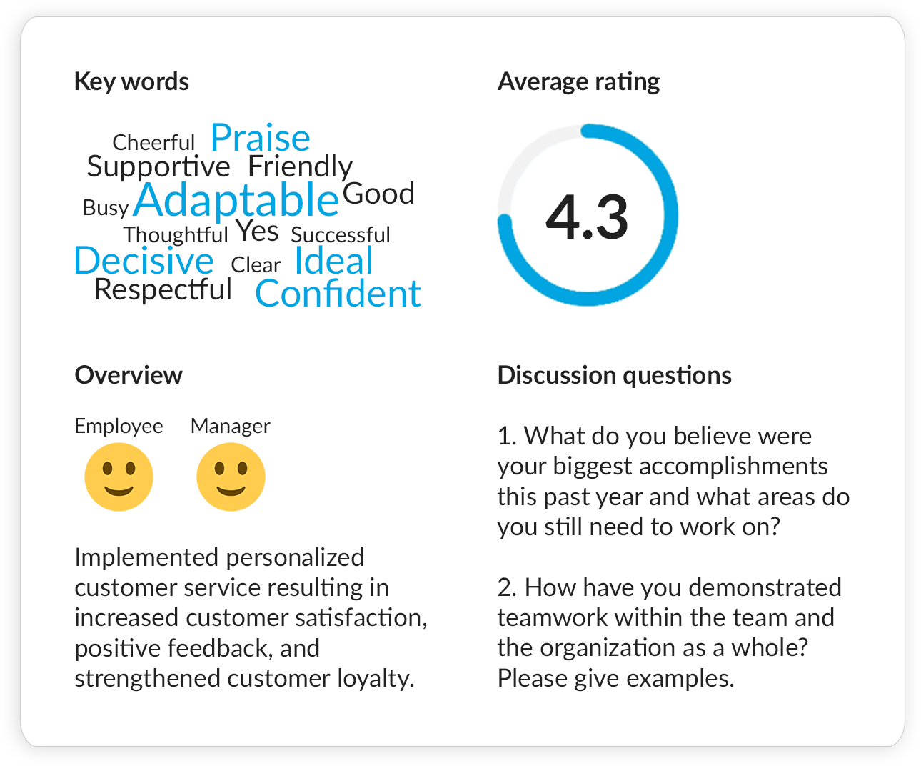 Create reviews that measure employee performance, goals, and feedback with what's most important to your organization.