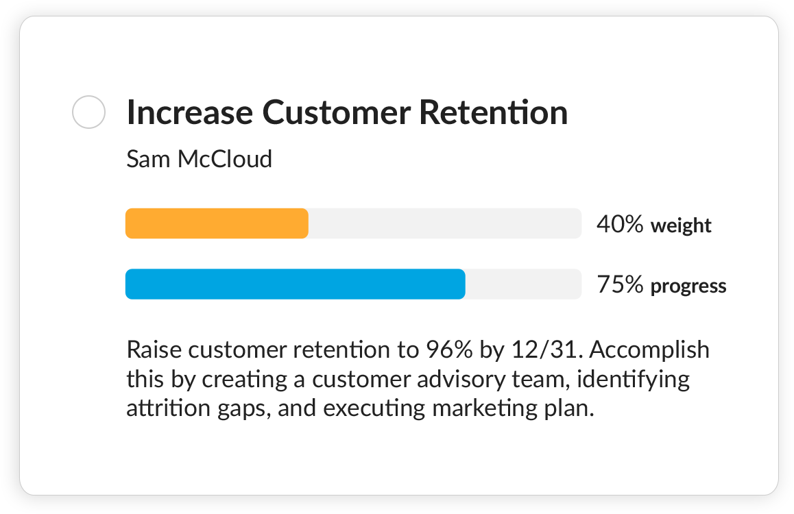 Improve goal and OKR achievement by monitoring milestones, tracking goal progress, and aligning workforce activities.